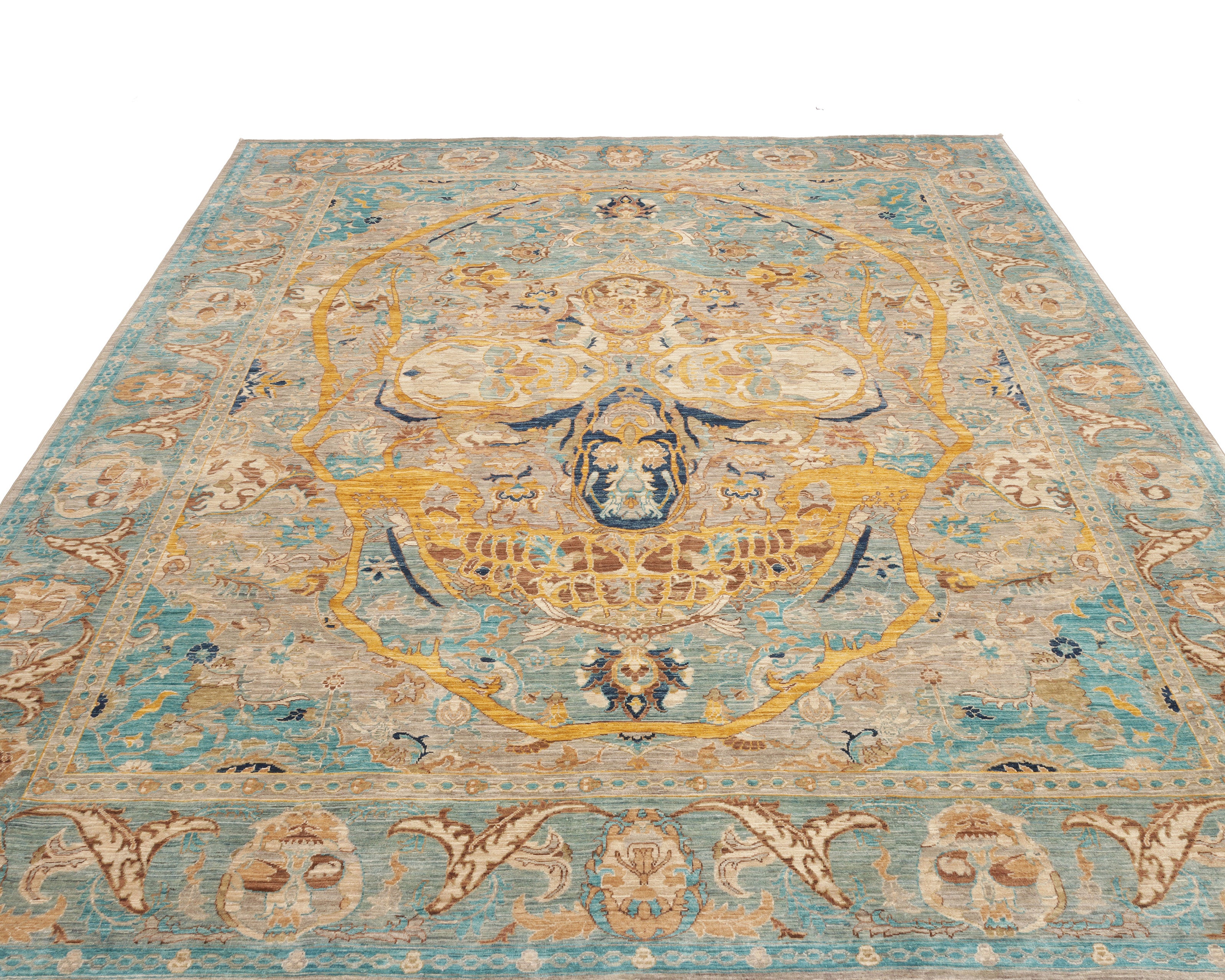 Shahi Vanitas is an exceptional hand-knotted rug in which royal tradition and philosophical depth converge. This unique piece belongs to the highest category of Shahi fine rugs, renowned for their extraordinary fineness, intricate detailing and uncompromising craftsmanship.
