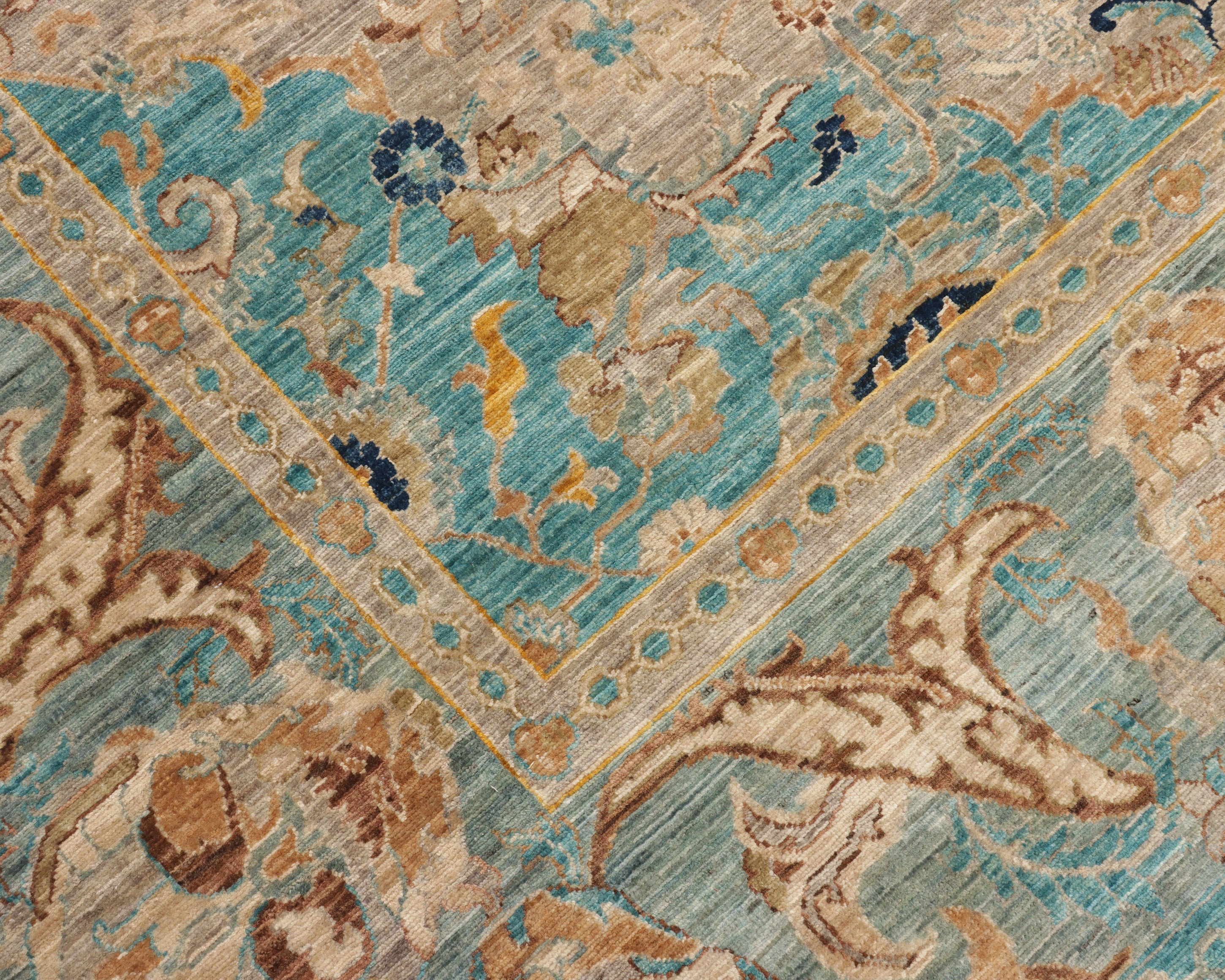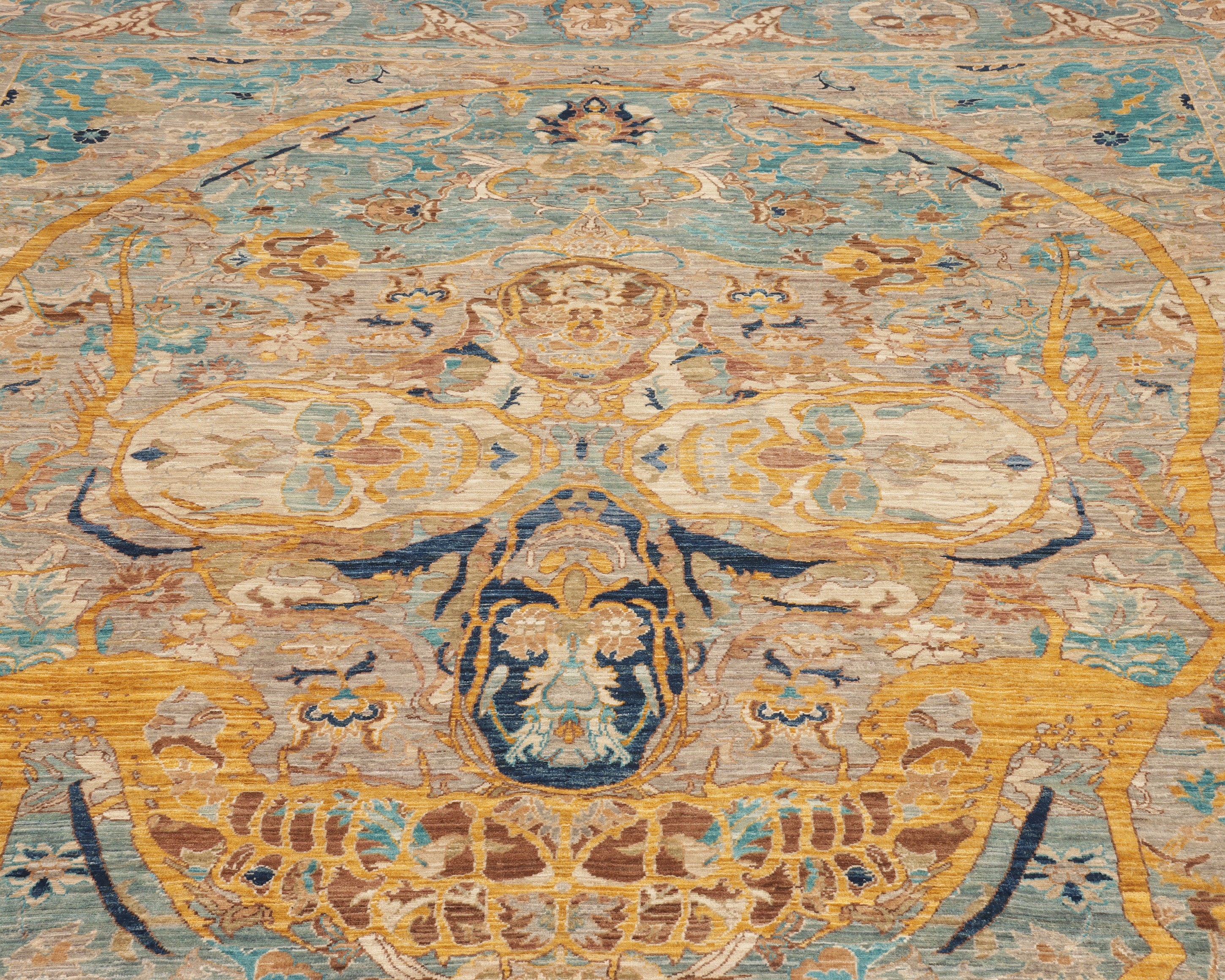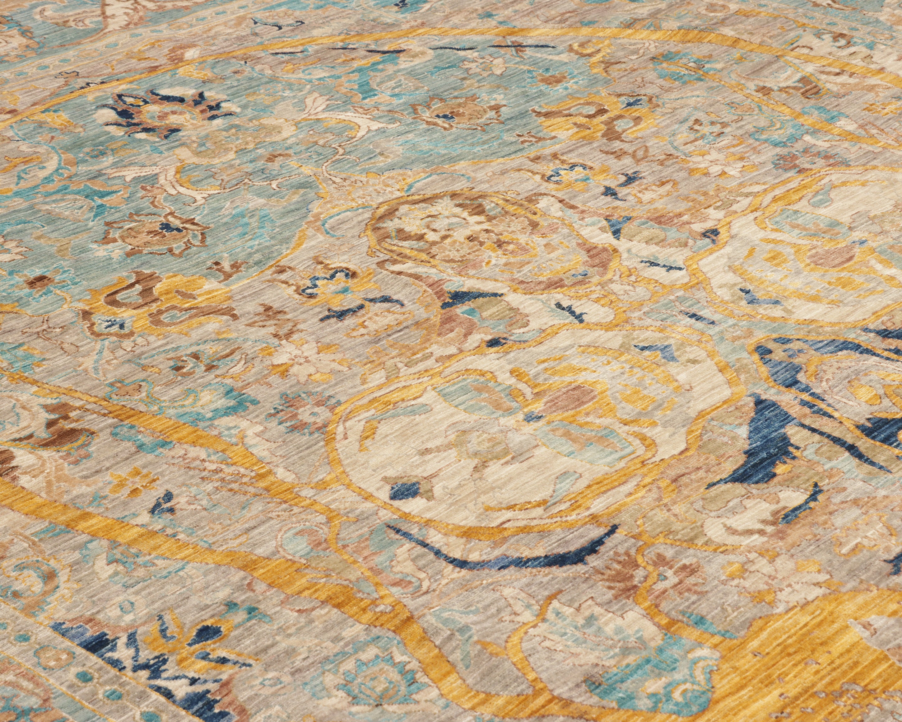 The extreme fineness of the knotting gives the rug a painterly quality, with remarkable depth and detail that becomes fully visible upon closer inspection.