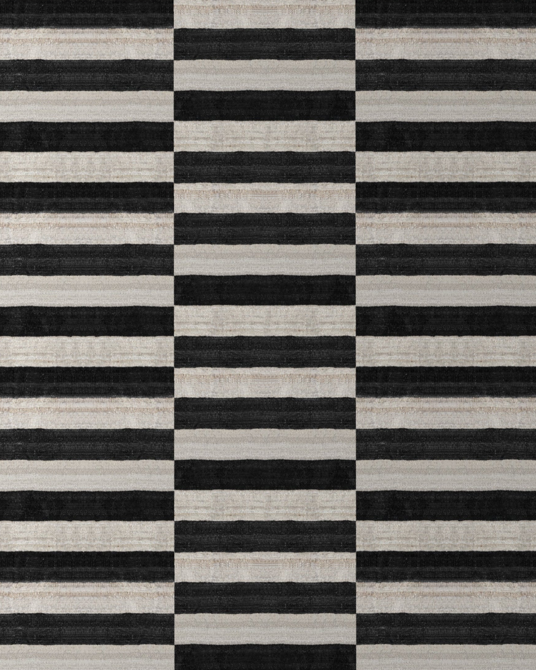 De combinatie van wol en zijde versterkt de grafische vormen en geeft elk stuk een luxueuze, moderne uitstraling.