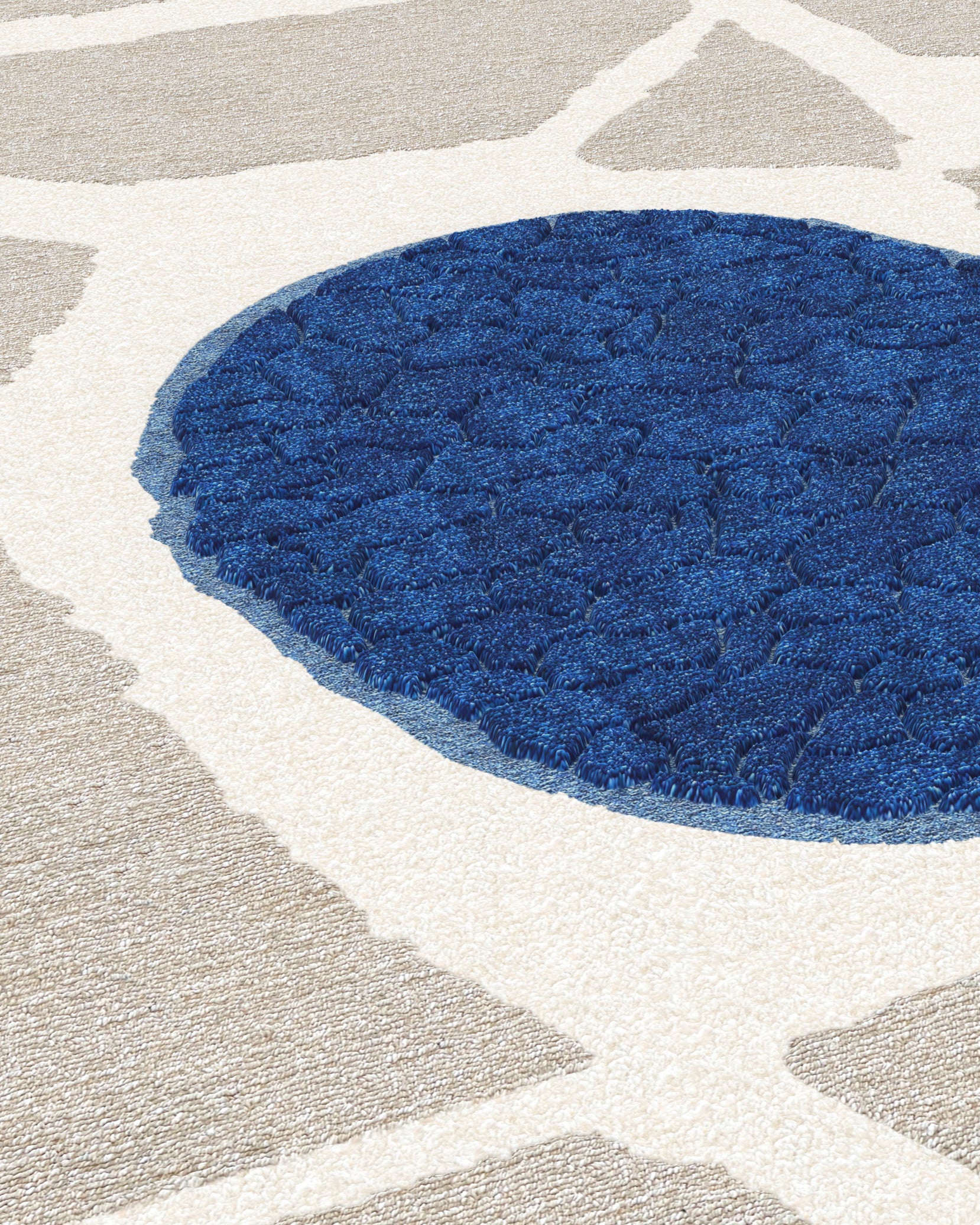 Het kleed "PATH" inspireert tot reflectie op de reis van het leven. Het leven is een kronkelend pad van keuzes en kansen, met uitdagingen onderweg. Elke stap brengt je dichter bij je dromen. Het ontwerp van het kleed symboliseert deze reis, waarbij het pad jouw unieke pad vertegenwoordigt en de blauwe vlek momenten van sereniteit symboliseert. Terwijl het pad doorgaat, gaat ook jouw reis, gevuld met eindeloze mogelijkheden.