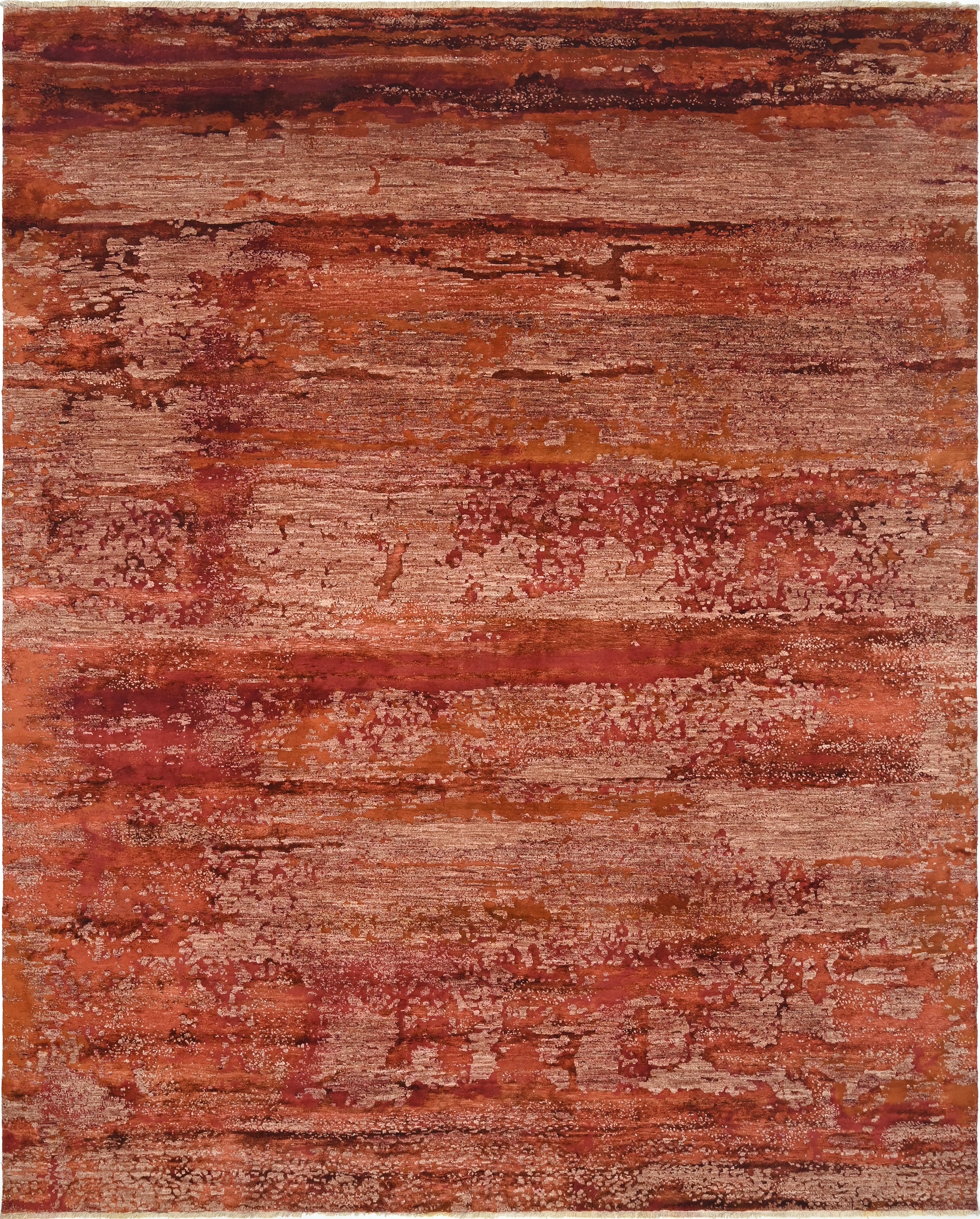 Hand-knotted in a luxurious blend of Himalayan wool and natural silk, Magma Burst balances richness with refinement. The wool provides density and durability, while the silk enhances luminosity, allowing copper and crimson tones to subtly shimmer as the light changes throughout the day.